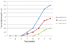 The tumor growth curve of each tumor was plotted with Excel software using the recorded length of them. In these growth curves the horizontal axis is based on day and the vertical axis is based on tumor length in cm (Figure3).
