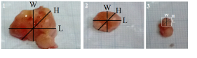 Figure2. Illustration of the method used to measure the tumor size. The tumor length, width and height were measured once a week using a caliper.