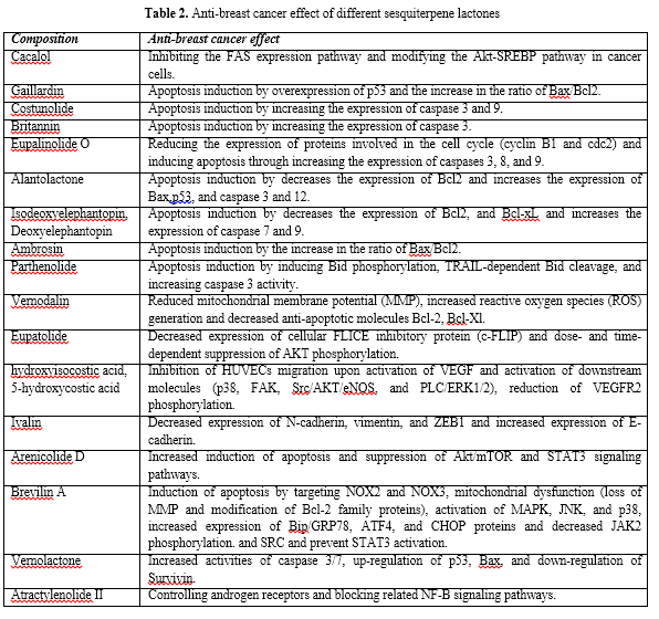 35. Hamzeloo-Moghadam M, Aghaei M, Fallahian F, Jafari SM, Dolati M, Abdolmohammadi MH, et al. Britannin, a sesquiterpene lactone, inhibits proliferation and induces apoptosis through the mitochondrial signaling pathway in human breast cancer cells. Tumour Biol. 2015;36(2):1191-8. [