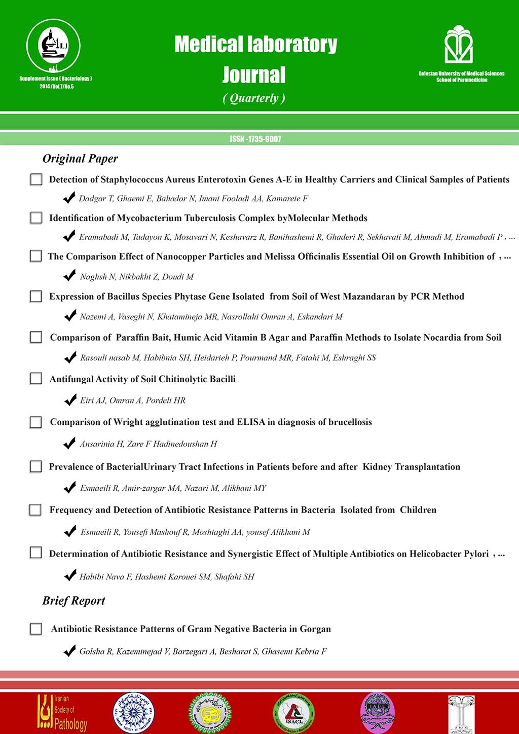 Volume 7, Issue 5 (supplement Issue( Bacteriology)[PERSIAN] 2014)